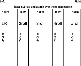 When attaching multiple rolls, attach them from left to right, and to connect the pattern, overlap them on the white space (0.4cm) at the right end of the wallpaper.